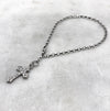 Tiny solid silver gothic cross charm on a silver adjustable chain bracelet.