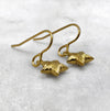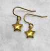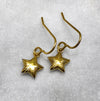 Solid gold plated silver stars, engraved to catch rays of light. The stars are on gold plated silver hooks.