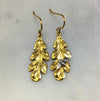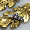 Solid sterling silver gilt oak leaf hook earrings with a tiny silver bee on one earring.