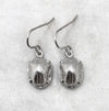Solid silver scarab beetle hook earrings.