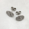 Solid silver parrot coin stud earrings.