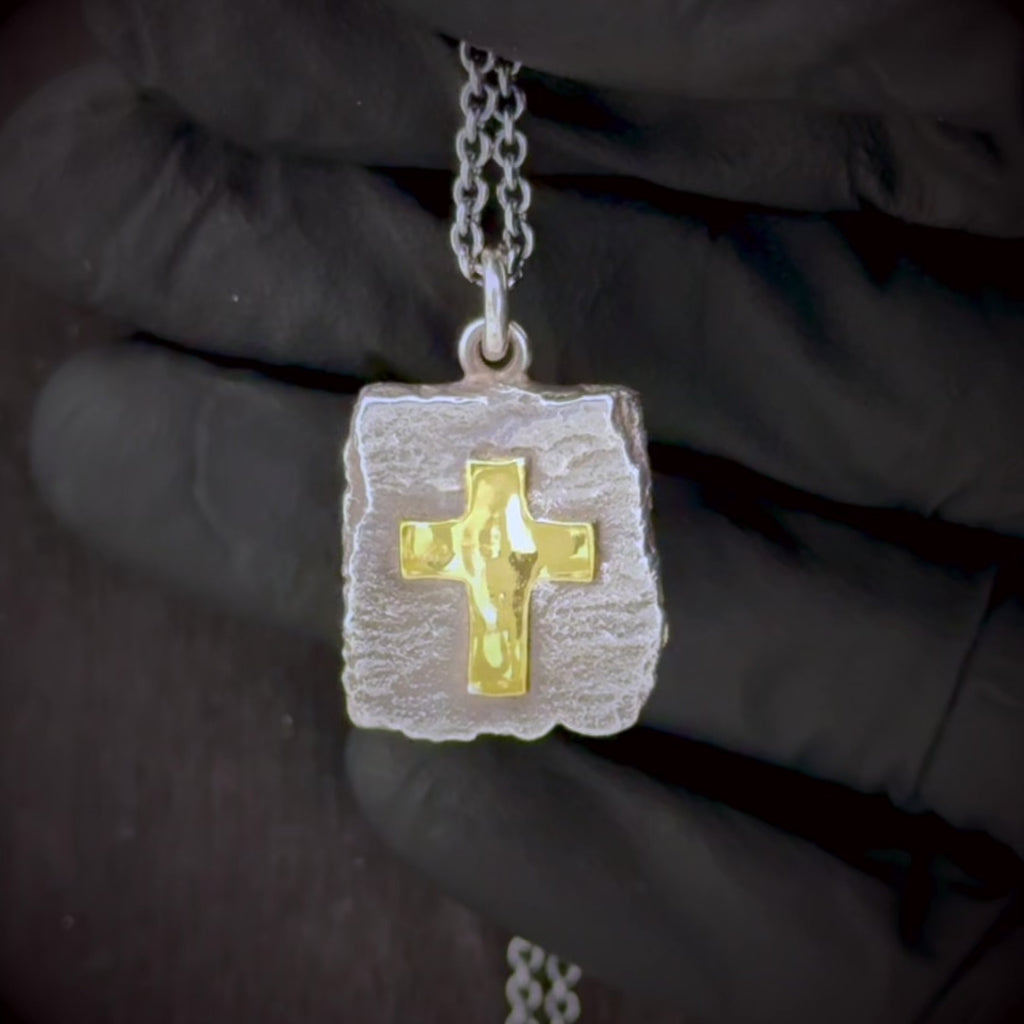 Crafted with intention and meaning, this slate-inspired pendant is cast in solid 925 sterling silver and features a beautifully detailed 24k gold plated cross. The contrast of cool silver and warm gold gives this piece a quiet power — a timeless symbol of faith, strength, and grace.