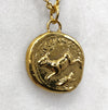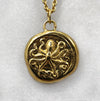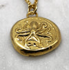 Gold plated solid silver octopus & hare coin pendant on a gold plated silver adjustable chain.