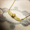 Gold plated solid silver winged pendant featuring serpents and a scarab beetle on an adjustable gold plated silver chain.