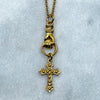 Gold Hand Grasping Cross, Anchor and Heart Necklace