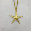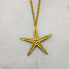 Gold plated solid silver starfish pendant on an adjustable gold plated silver chain.