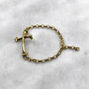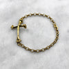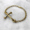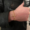 Solid silver gold plated bone cross on a solid silver gold plated chain bracelet.
