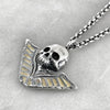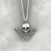 Solid 925 Sterling Silver winged skull ( Victory Skull ) pendant with the words 'Memento Mori' engraved on the reverse.
